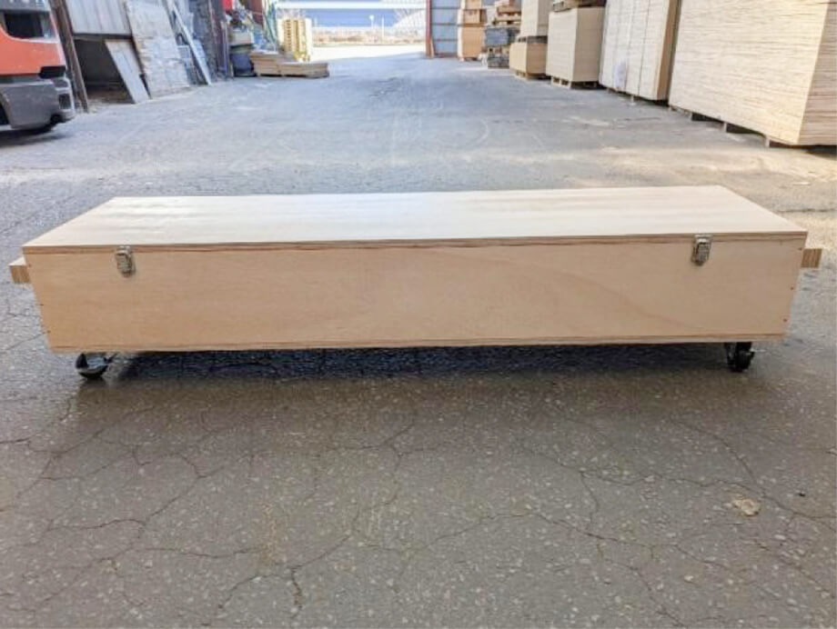 本製品は印刷機の一部を構成する「アニロックスロール」というローラーを梱包し、納品に使用する木製の箱です。